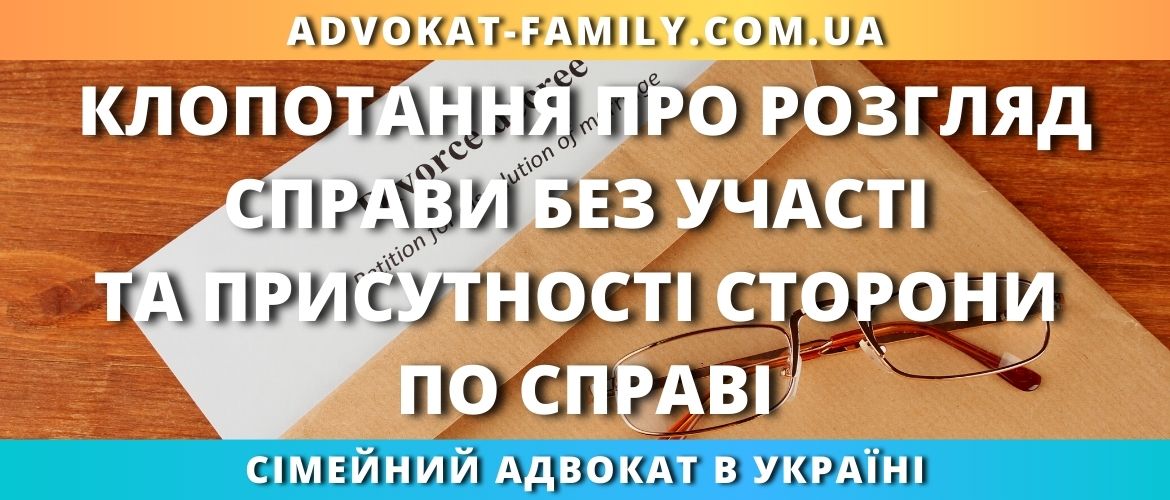Клопотання про розгляд справи без участі та присутності сторони по справі